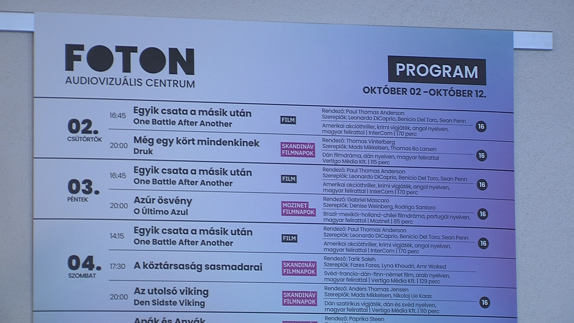 Ősszel és télen is filmpremierekkel és filmes fesztiválokkal várja az érdeklődőket a FOTON Audiovizuális Centrum. A várbéli artmozi 2023-ban nyitotta meg kapuit, mintegy 20 ezer nézőt fogadtak azóta. A Skandináv Filmfesztiválhoz kapcsolódva a héten öt filmet vetítenek, a Mozinet Filmnapok keretében pedig többi között Nemes Jeles László Oscar-díjra jelölt Árva című filmje is látható majd a következő hetekben. Novemberben ismét itt tartják a Pannonfíling Mozgóképes Találkozót.